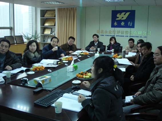 1月15日,武汉市移民局副局长黄华、综合处处长田雁等一行4人莅临永业行指导工作。 永业行董事长方国成、副总裁肖锋、研究部总经理江洁等对黄局长一行表示热烈欢迎。副总裁肖锋带领黄局长等参观了永业行的办公场所,并介绍了永业行的发展历程、近期业绩、发展规模、行业地位、长远目标等情况;研究部高级经理吴品涵就双方合作的南水北调移民稳定风险评估研究课题作了成果汇报;黄局长对永业行的良好发展态势表示赞赏,对永业行课题组的工作给予了充分的肯定,并希望今后双方继续加强交流和合作。此外,他还结合课题研究成果提出了一些宝贵的建议。 永业行研究部副总经理吴学锋、唐佳林,高级经理张徽,经理冉超等也参与